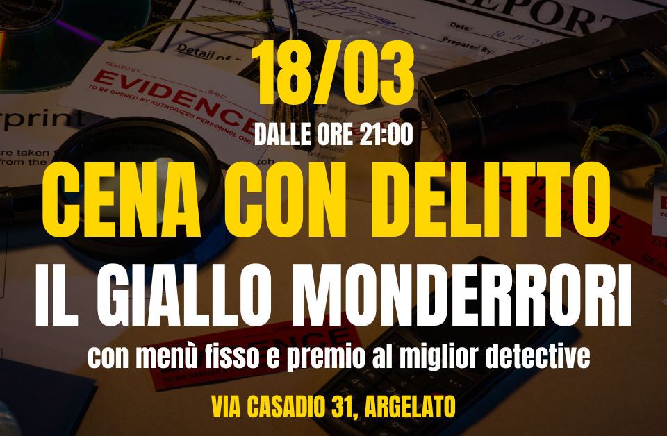Siete pronti a vivere una serata che metterà alla prova il vostro intuito? Una cena indimenticabile dove il buon cibo si intreccia con un intricato giallo!